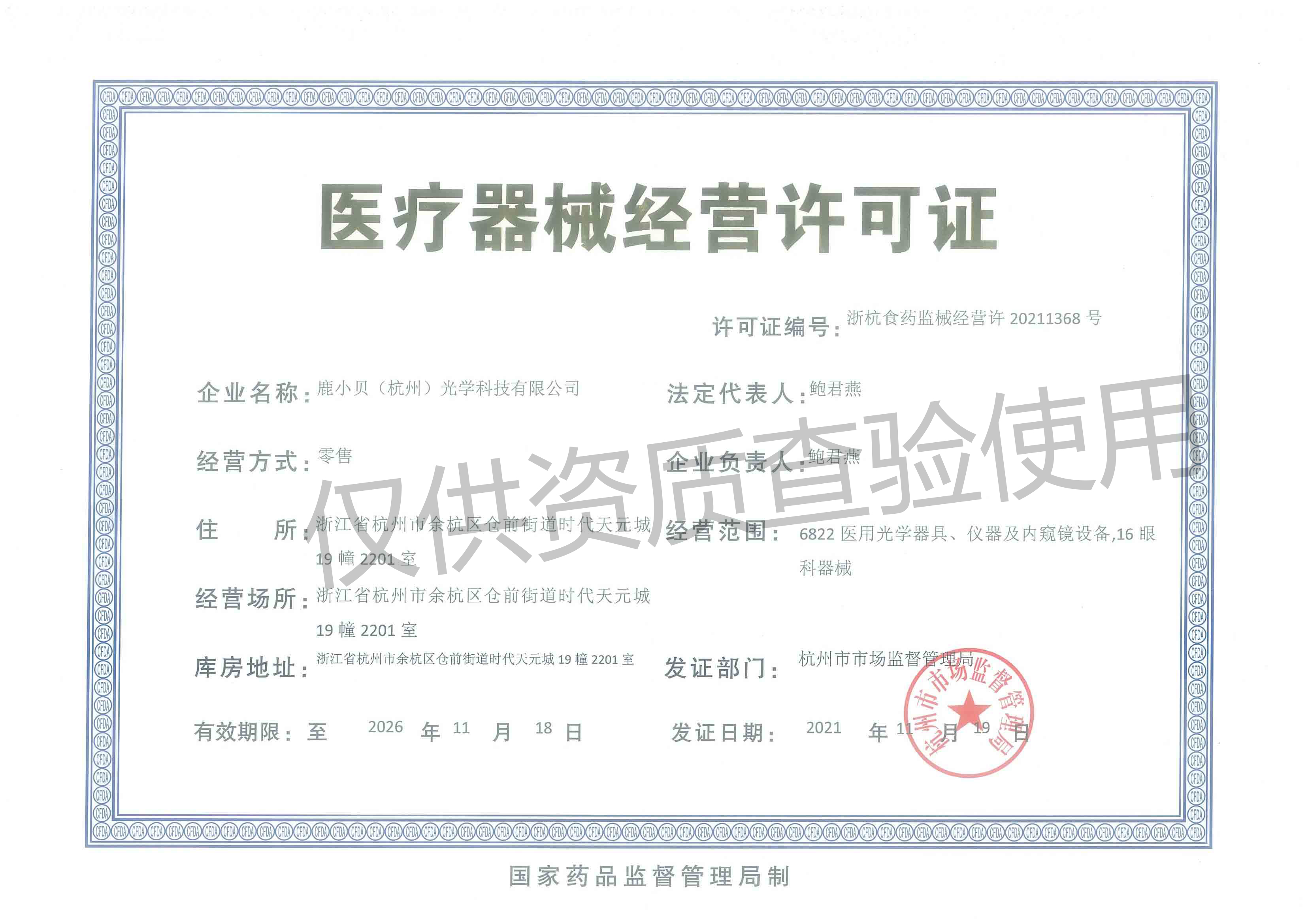 生产企业;深圳市大仕城光学科技有限公司 国械注准20193160914
