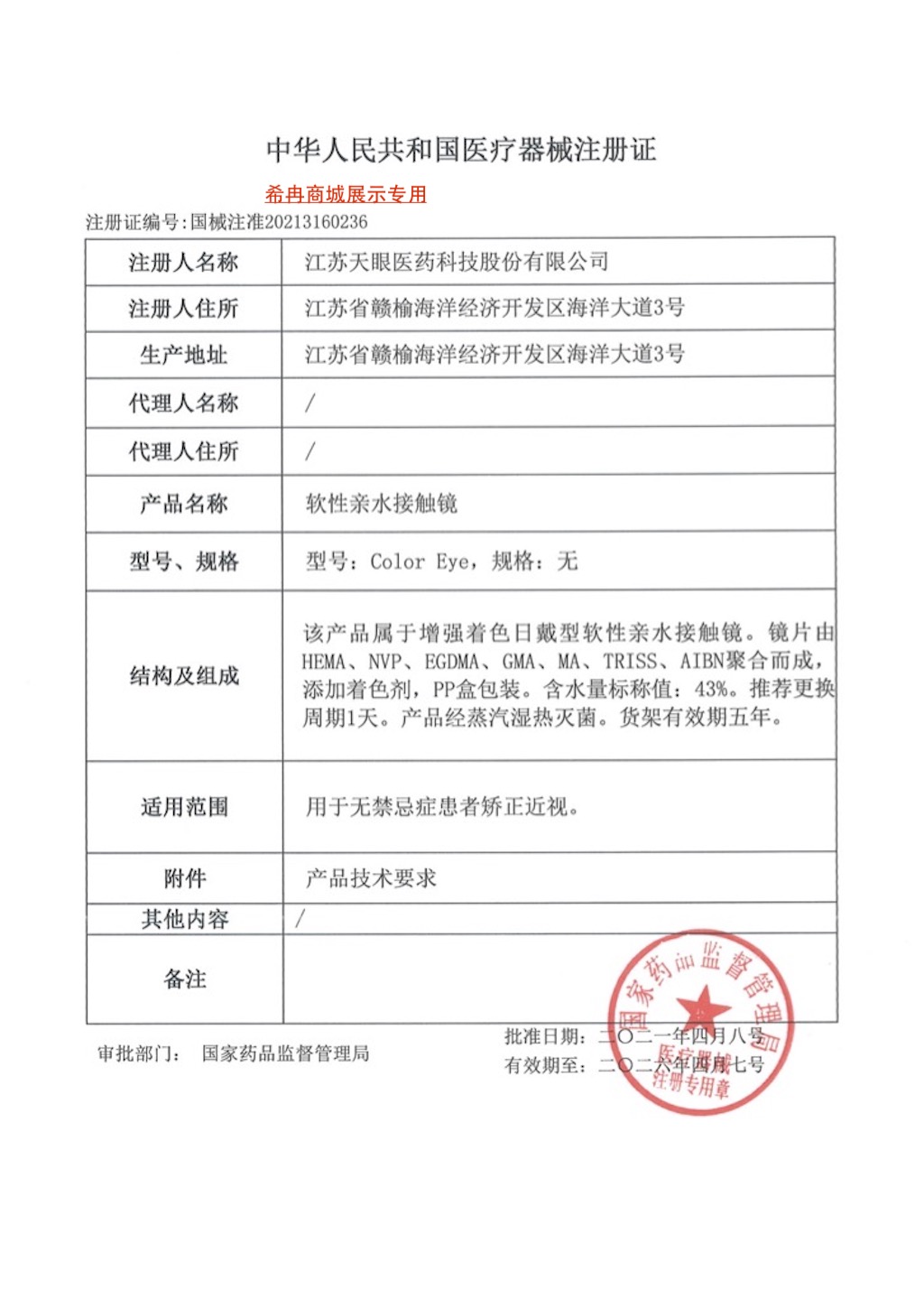 生产企业 江苏天眼医药科技股份有限公司-