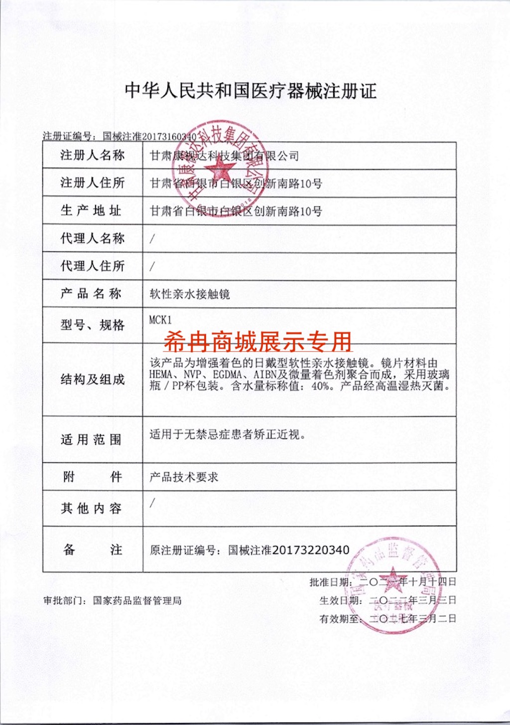 生产企业:甘肃康视达科技集团有限公司